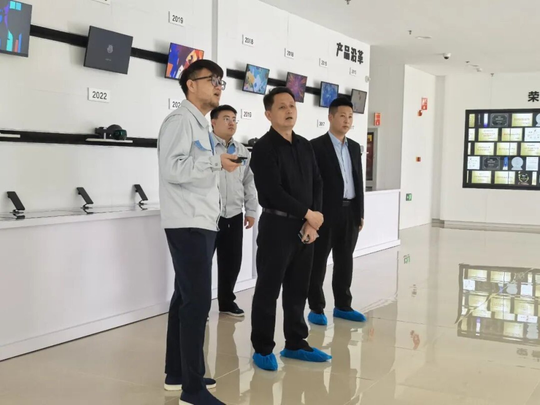 在京东方,李京平董事长一行在企业人力资源相关负责人陪同下,深入生产一线,实地参观产品生产全流程,细致了解屏幕组装、品质检测及打包运输等关键环节,近距离察看我校学子的工作环境与岗位内容,并实地走访员工住宿区域。在企业荣誉墙及产品展示区,李京平详细了解京东方的发展历程、技术创新成果与行业地位,对企业的综合实力与发展愿景予以高度认可。