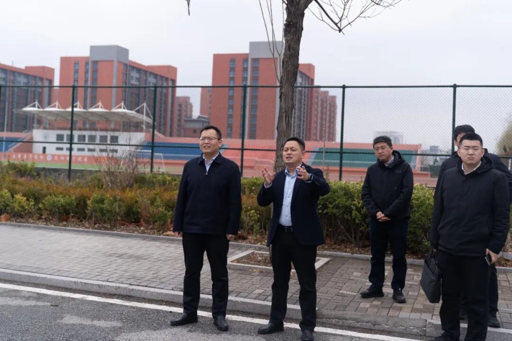 随后,调研组一行先后深入学校贤都湖、图书馆、运动场、桃李巷等场所实地察看,边走边看、边听边问,实地感受校园建设风貌,详细了解学校基础设施配套、校园文化建设、办学规模及日常教学运营等相关情况。