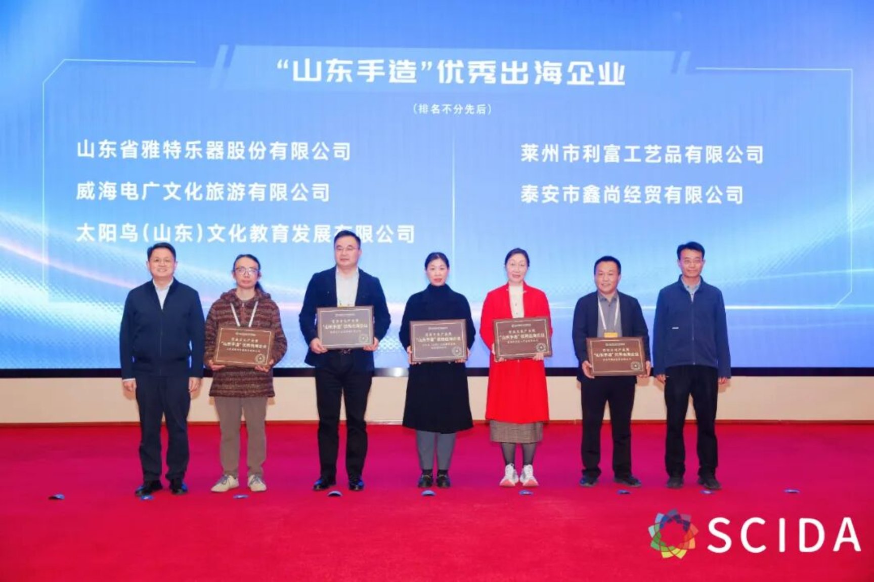 山东文化产业职业学院董事长、协会副会长李京平为“山东手造”优秀出海企业颁奖