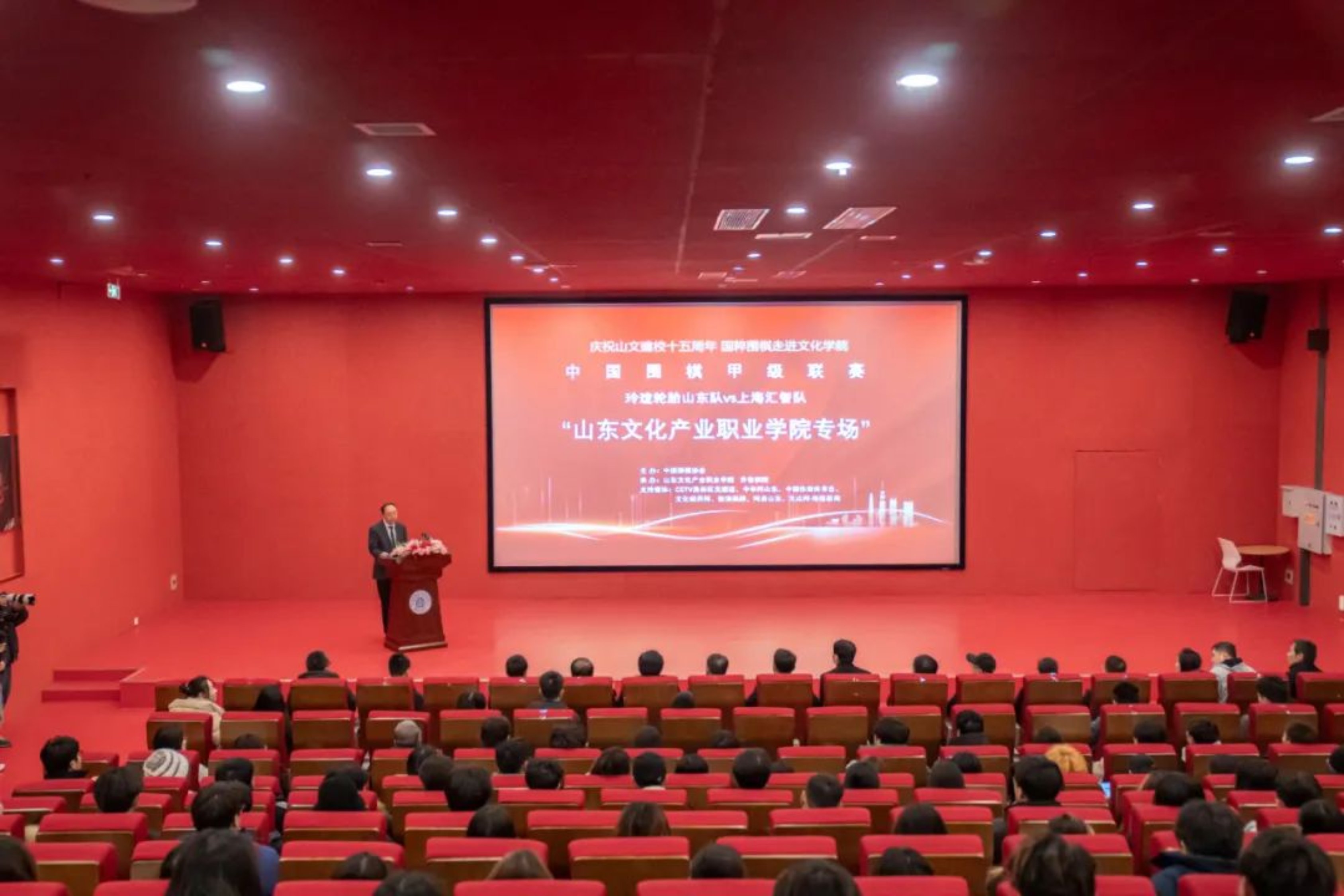 李京平代表学校向出席本次大赛的各位领导、各位嘉宾以及参赛选手们表示最热烈的欢迎和最诚挚的感谢!他表示,中国围棋甲级联赛作为国内围棋界的顶级赛事,不仅是棋手技艺切磋的舞台,更是传承中华优秀传统文化的重要阵地,对文化传承意义深远,同时,与我校“文化立身、产业报国”的办学理念高度契合。山东文化产业职业学院也将以此次大赛为契机,在校园内掀起学习围棋文化的热潮。未来,我校也会继续邀请围棋界的大师、名手走进校园,开展讲座、交流活动,让学生近距离感受围棋的魅力,培养学生对传统文化的热爱与传承意识,让他们在围棋文化的熏陶下,树立正确的价值观和文化自信。