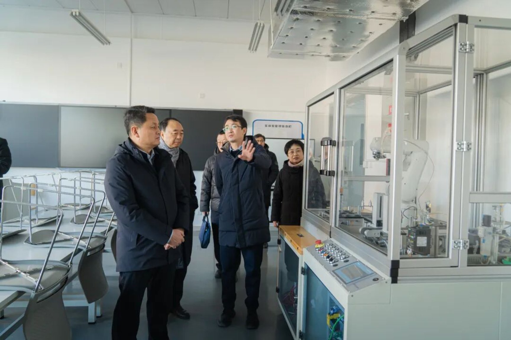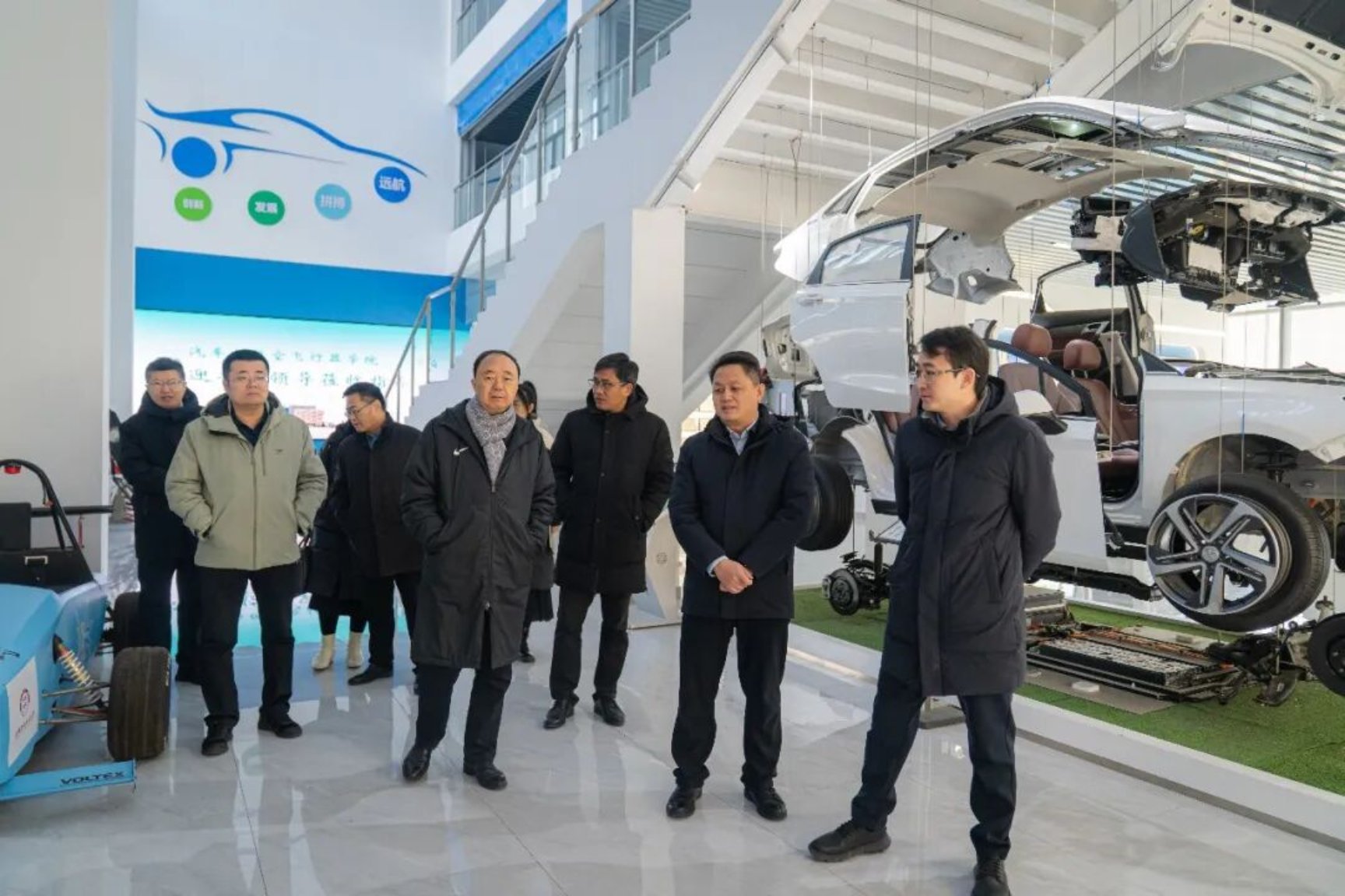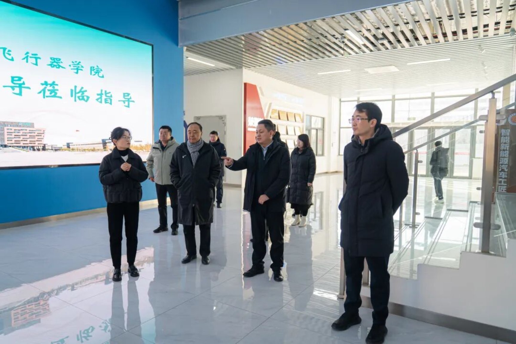 在淄博职业技术大学领导的陪同下,代表团实地参观了该校的智能新能源汽车实训中心、智能制造实训中心以及办学成果数字展厅。现代化的实训设施、前沿的技术应用场景、丰硕的育人成果,生动展现了淄博职业技术大学在实践教学、产教融合、技能创新等方面的雄厚实力与鲜明特色,给代表团成员留下了深刻印象。