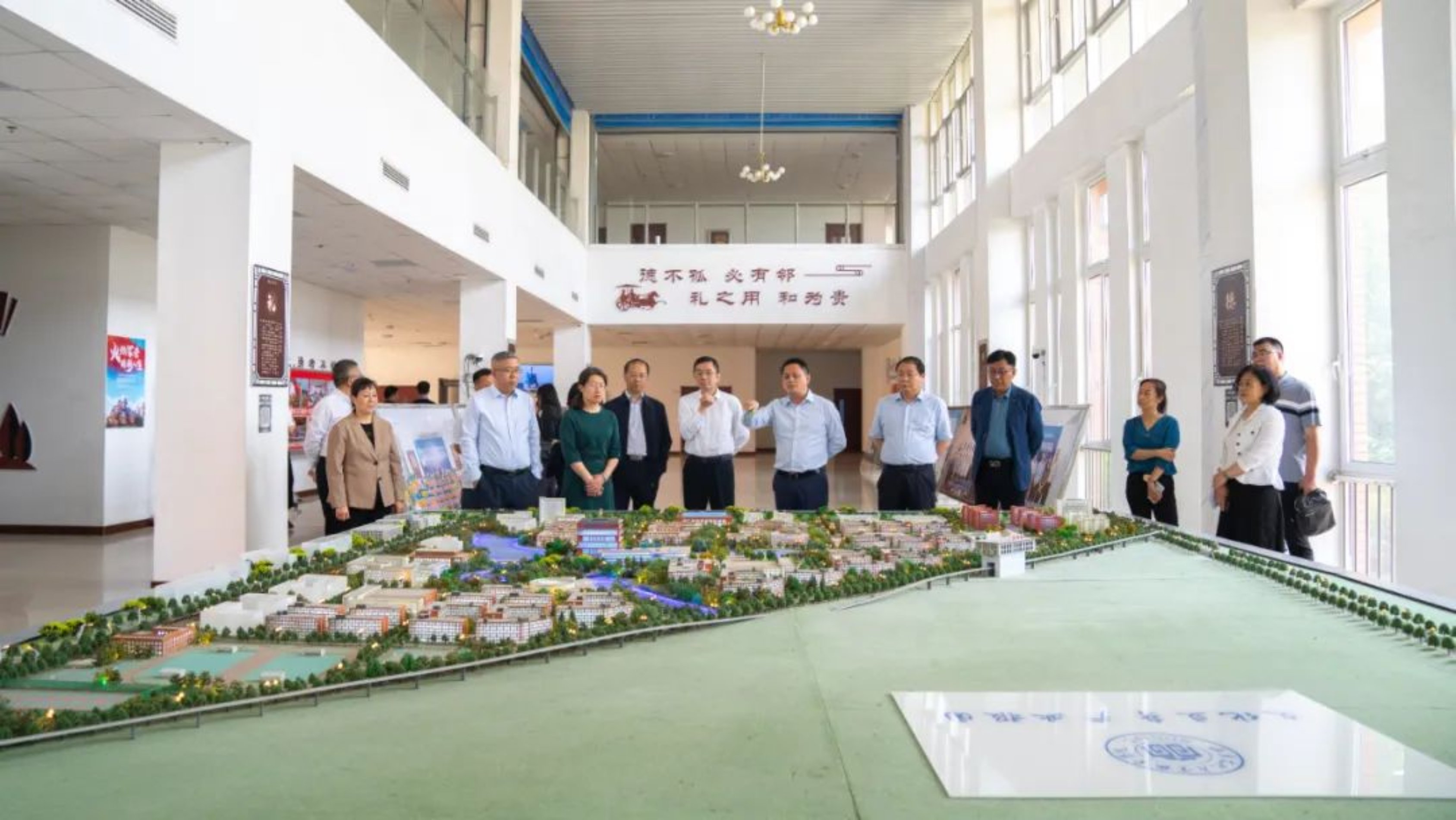 一行人参观了学校大事记展板、规划沙盘及校园环境,了解了学校的建设发展情况。