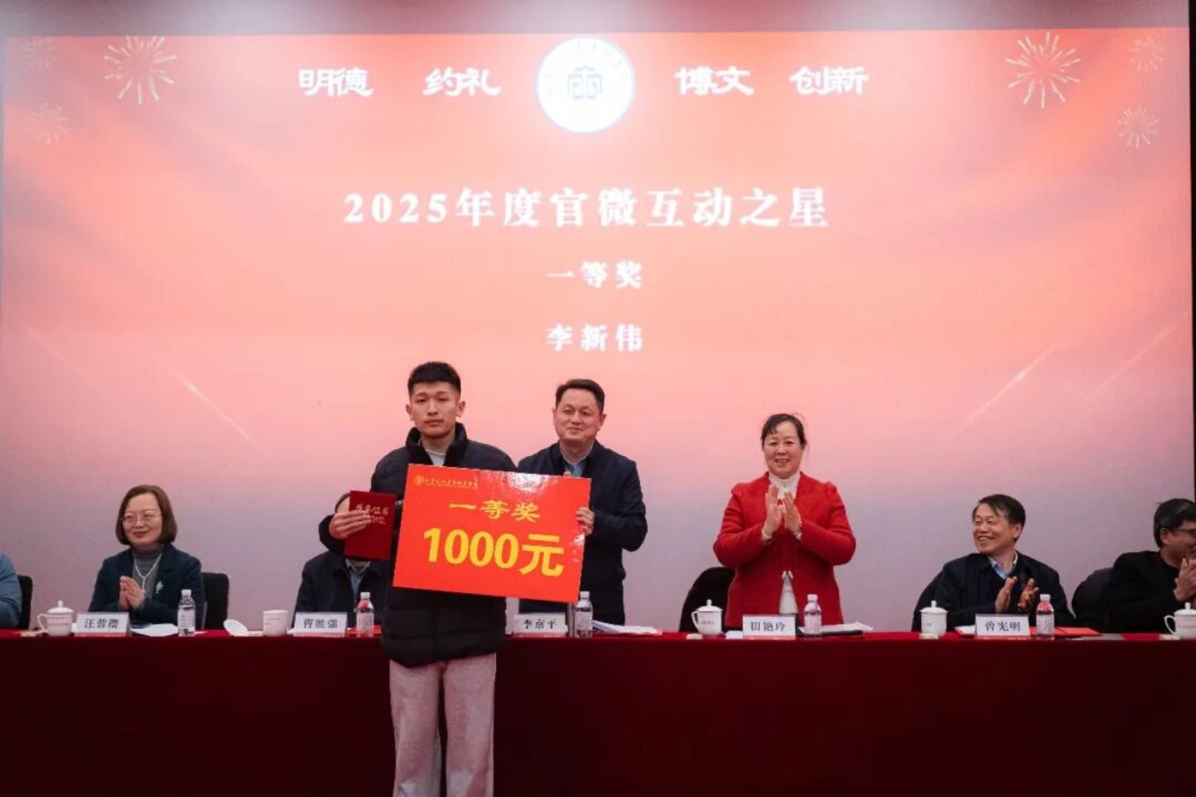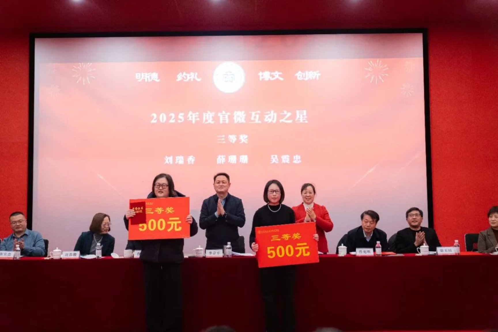 党委书记田艳玲宣读了《关于表彰2025年度目标任务考核优秀单位的决定》《关于表彰2025年度绩效考核优秀人员的决定》《关于表彰2025年“官微互动之星”的决定》;