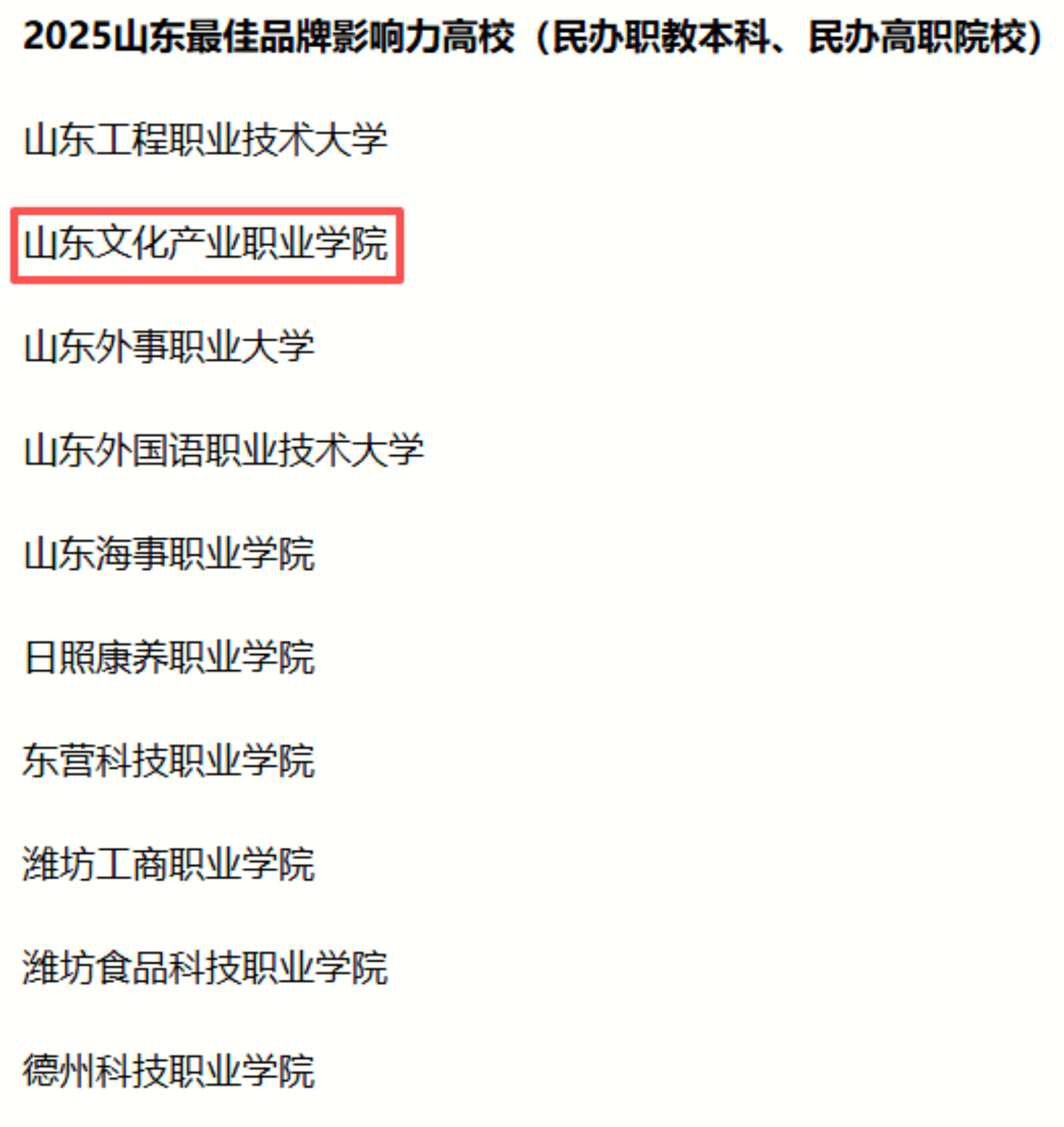 此次荣膺“2025山东最佳品牌影响力高校”,是对学校品牌建设工作的充分肯定,更是对未来发展的激励。山东文化产业职业学院将以此为契机,继续深化内涵建设,强化品牌引领,在产教融合、人才培养、文化传承创新等方面持续发力,不断提升办学质量与社会影响力,全力创建“文化发展的传承高地和产业人才的创新摇篮”,为区域经济社会发展与高等职业教育高质量发展贡献更大力量。