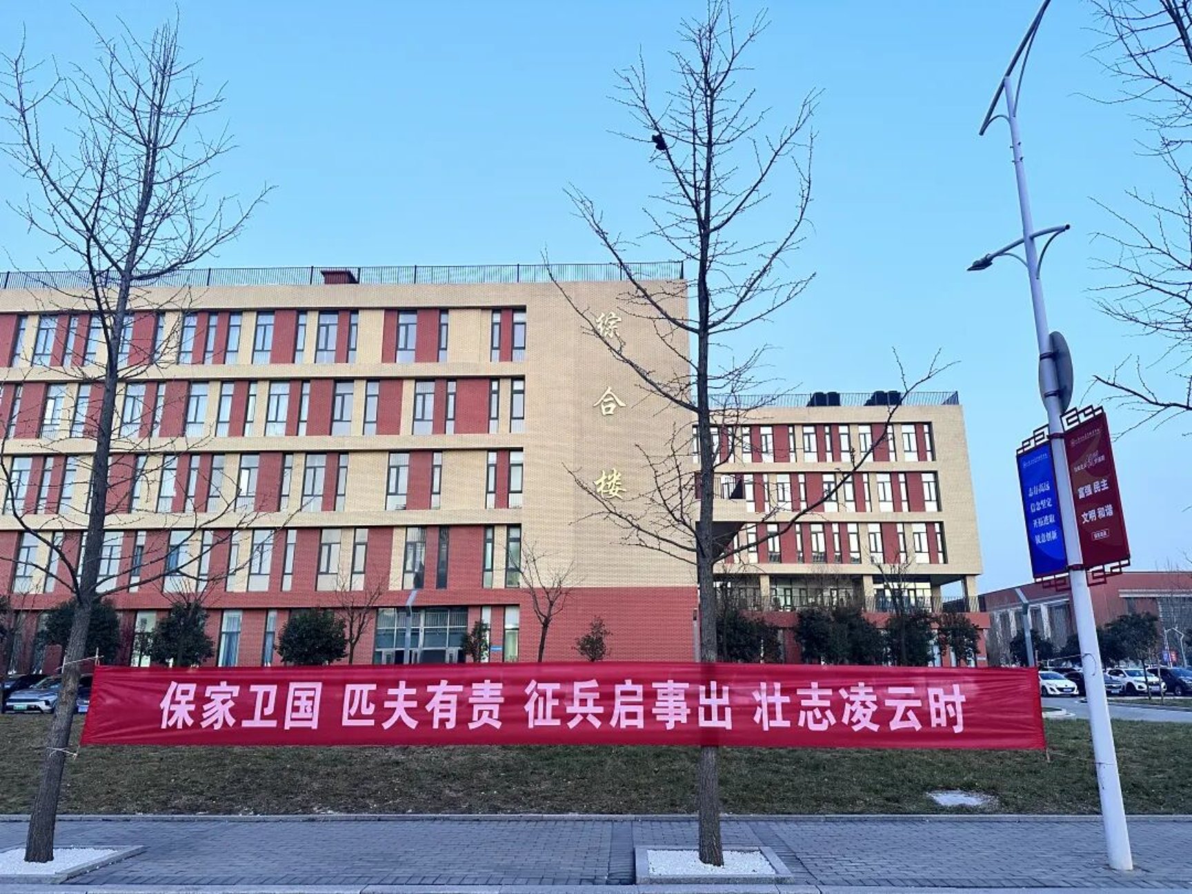 学校坚决贯彻落实党中央、国务院、中央军委关于新时代征兵工作的决策部署,以《国防法》《兵役法》等法律法规为根本遵循,深化国防教育与思想政治教育融合,将征兵政策宣传、强军思想引领有机融入日常教学、校园文化建设和社会实践各方面。通过开设国防教育必修课程、举办“强军思想进课堂”主题宣讲、邀请退役士兵分享军营经历、开展“爱我国防”演讲比赛、组织国防知识普及展等多种形式,全方位、多角度向学生普及征兵政策、弘扬爱国强军精神,让“强国必须强军,军强才能国安”的理念深植每一位学子心中,引导学子树立家国情怀,增强国防意识。