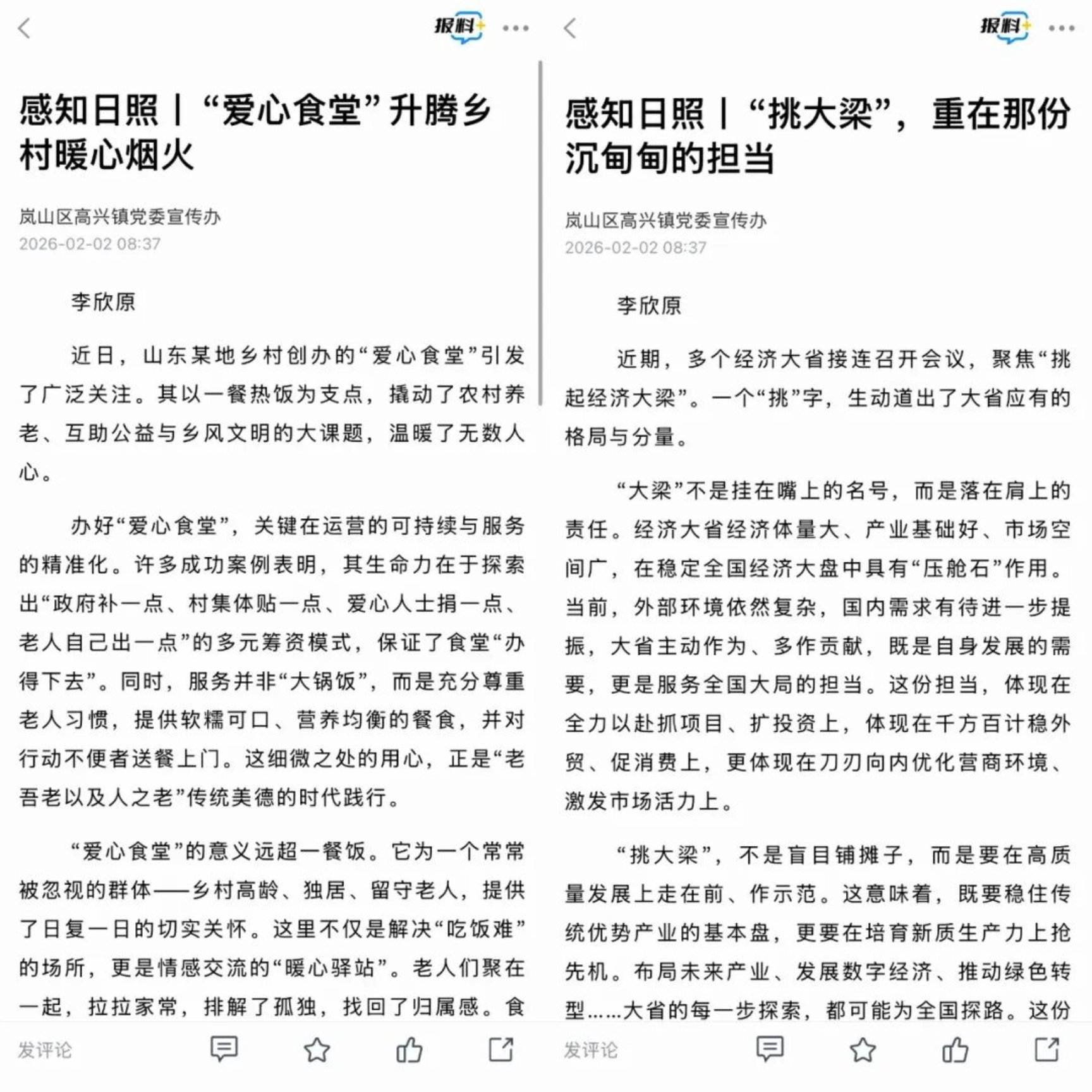 商贸与新媒体学院李欣原的寒假实践充满了专业色彩。在日照市岚山区高兴镇人民政府宣传办,她以 “青鸟计划” 为纽带,用文字传递思想力量,撰写的网评文章在海报新闻平台发布;用镜头定格乡土温度,拍摄剪辑的年集宣传视频展现家乡烟火气;用技能优化宣传效果,精细化的图文排版让基层宣传既有 “干货” 又有 “颜值”。