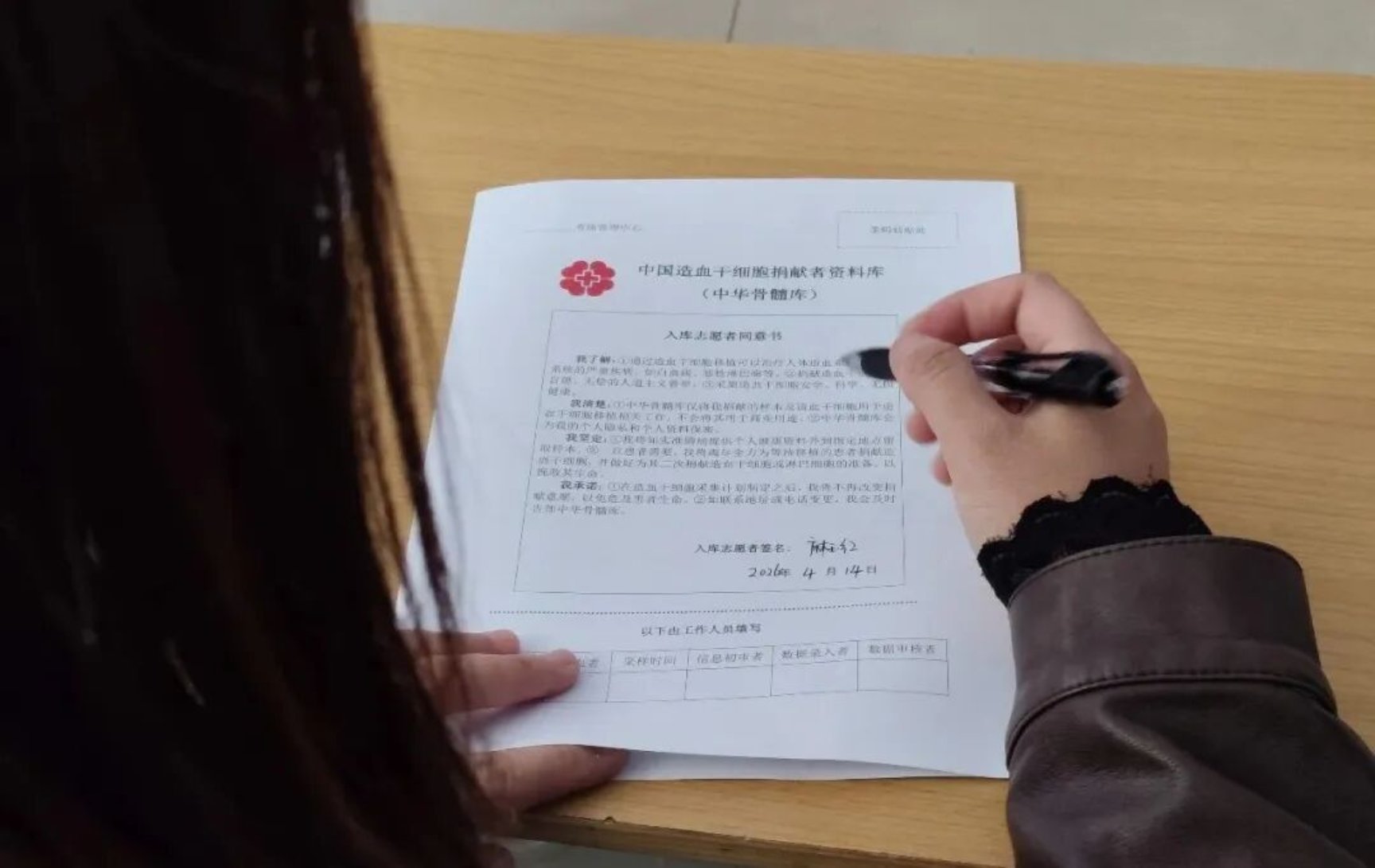 “第一次献血的时候我也紧张,扎针前偷偷攥了好几下拳头。”她一边挽起袖子,一边跟身边有些忐忑的同学聊天,“但一想到这几分钟的血,可能救一个人、一个家庭,就觉得特别值。”