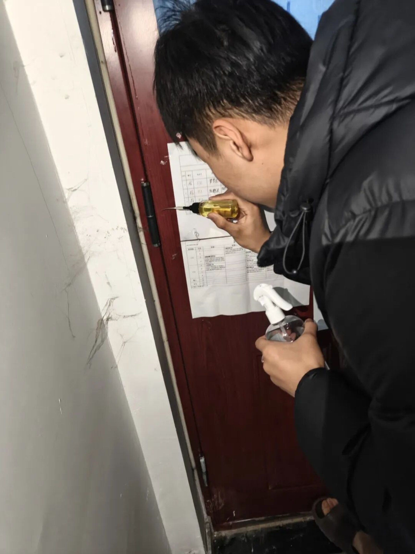 针对部分宿舍门轴干涩、开关时发出异响,抽屉推拉不顺畅等问题,学生干部们分工协作,有的仔细擦拭部件表面的灰尘,有的精准滴加润滑油,有的反复调试开关效果,动作娴熟又认真。“之前宿舍门一开关就‘吱呀’响,尤其是晚上休息时特别不方便,现在经过你们的处理,开关起来顺滑多了,太贴心啦!”刚体验过服务的同学满意地说道。