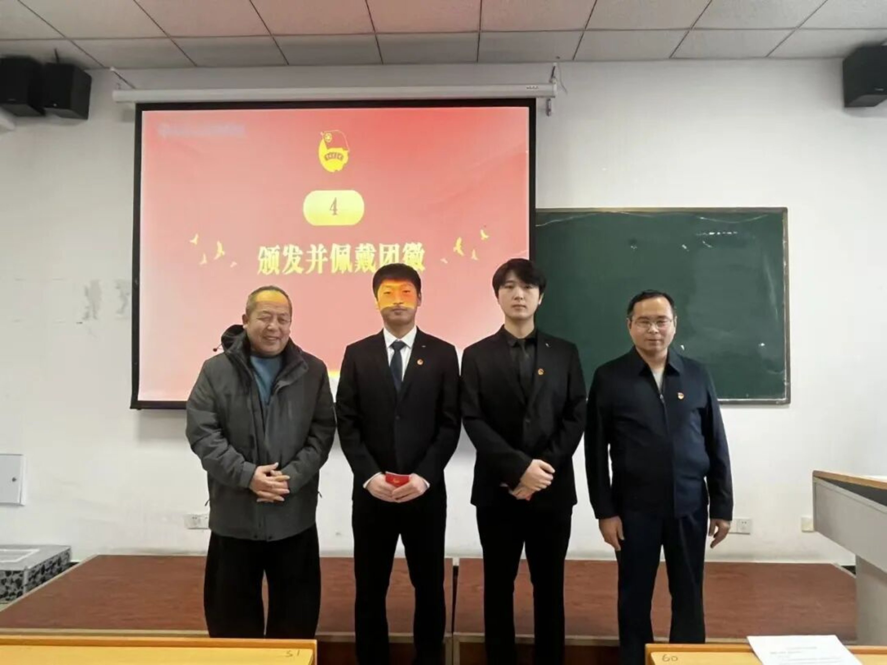 学院领导、老师以及老团员代表为新团员佩戴象征光荣与责任的团徽,并颁发团章。当金色团徽佩戴于左胸,鲜红团章握在手中,新团员们清晰感知到身份的转变与责任的重量,这不仅是荣誉的象征,更是使命的召唤,激励他们以实际行动践行团员担当。