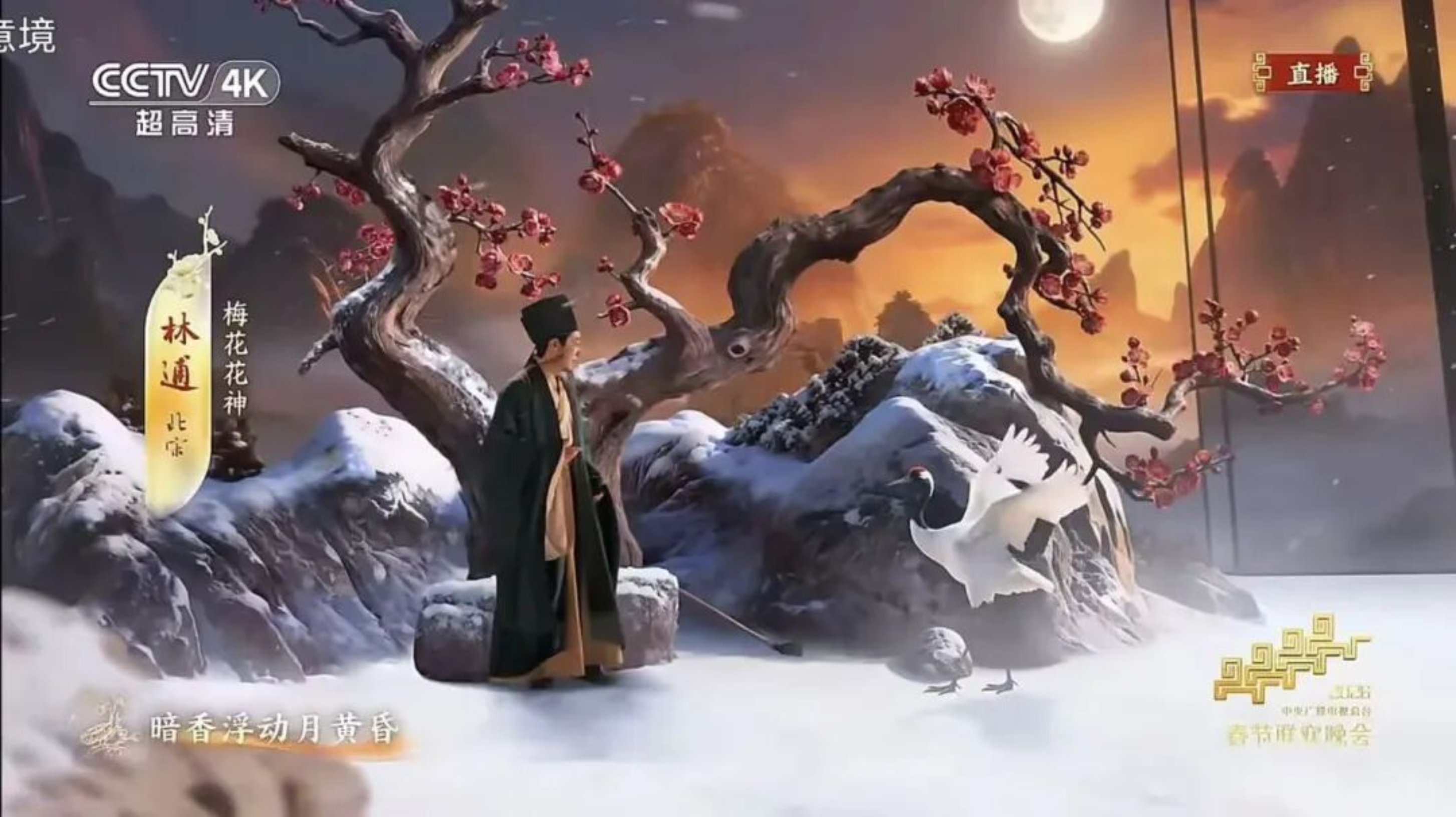 歌咏创意秀《贺花神》成为书法美学表达的高光时刻。节目中,十二花神的名号与背后的诗词意境,通过书法家方放的笔墨风格数字化呈现,屏幕上流转的不仅是花名标签,更是与诗人风骨相契合的线条韵律。陆游手中杏花绽放的瞬间,书法笔触化作花瓣的舒展轨迹,将“以书入画”的传统理念,通过AI交互技术实现了沉浸式落地。这种设计打破了书法“案头艺术”的边界,让线条成为叙事的载体——楷书的端庄、行书的流畅、草书的奔放,与节目情节相得益彰,完美诠释了传统书法“达其情性,形其哀乐”的艺术本质。