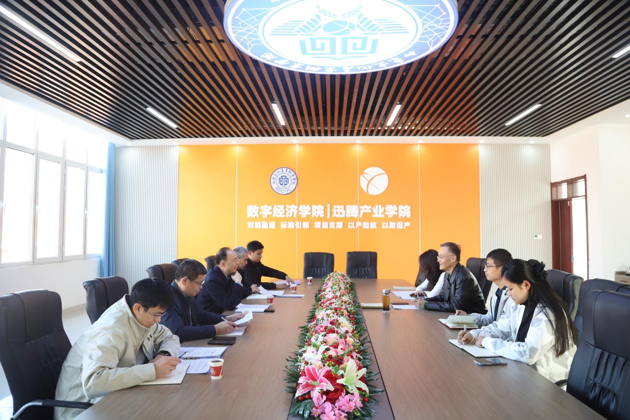为强化校企合作办学力度,深化产教融合,近日,曹胜强校长带队莅临数字经济学院暨迅腾产业学院,开展专项工作调研与督导。学院院长郝雷、院长助理于立虎、学工主任孙明真、教研室主任崔慧丽参加座谈。