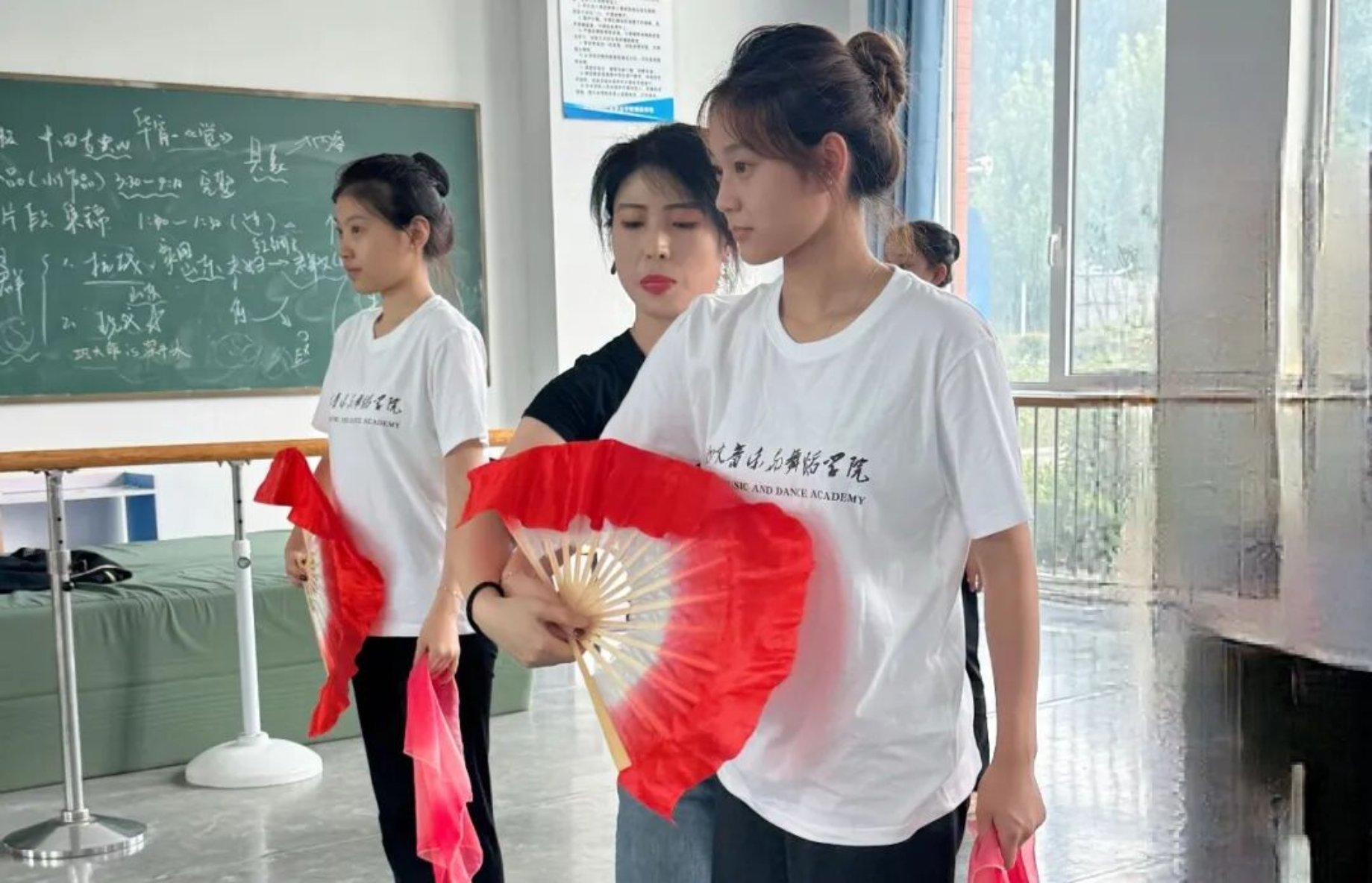 为让师生系统掌握海阳秧歌的专业精髓,围绕音乐舞蹈教学改革方向反复打磨课程体系,最终确定“隔周授课”的教学模式。每到上课日,老师们便早早驱车出发,带着花鼓、乐队伴奏等专业道具与满腔热忱准时抵达课堂,用 “理论+专业示范+一对一纠错” 的教学方式,将这项国家级非遗的技艺毫无保留地传递给师生。