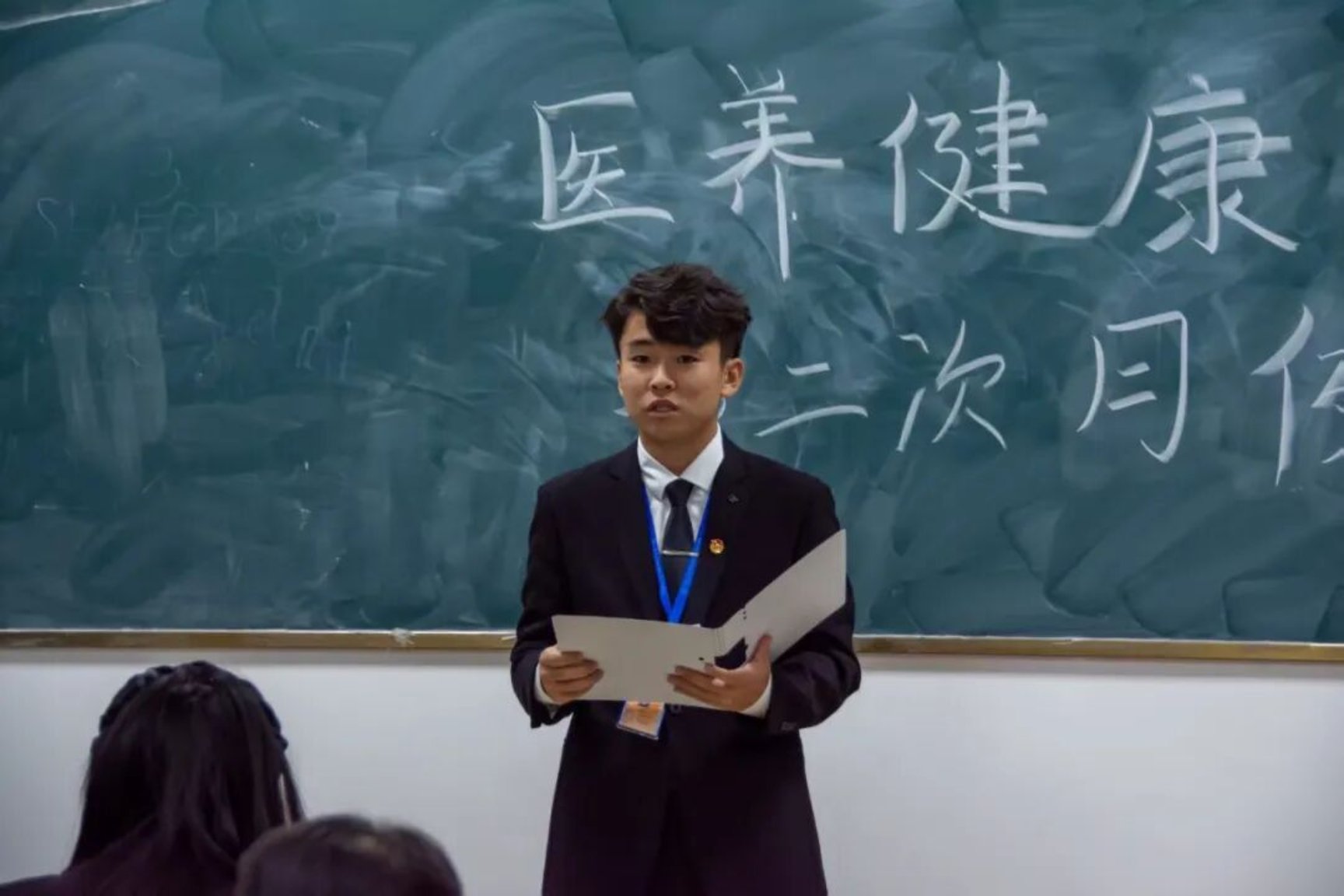大会正式开始,医养健康学院学生自律委员会主席团代表钟积超发言。执行主席钟积超首先代表主席团,向全体成员的辛勤工作与无私奉献致以诚挚感谢。他指出,无论是日常上课督导的认真值守,还是各项学风建设活动的精心筹备,大家的每一分坚守和努力,都为推进学院优良学风建设贡献了重要力量,展现了学生自律委员会成员的责任与担当。
