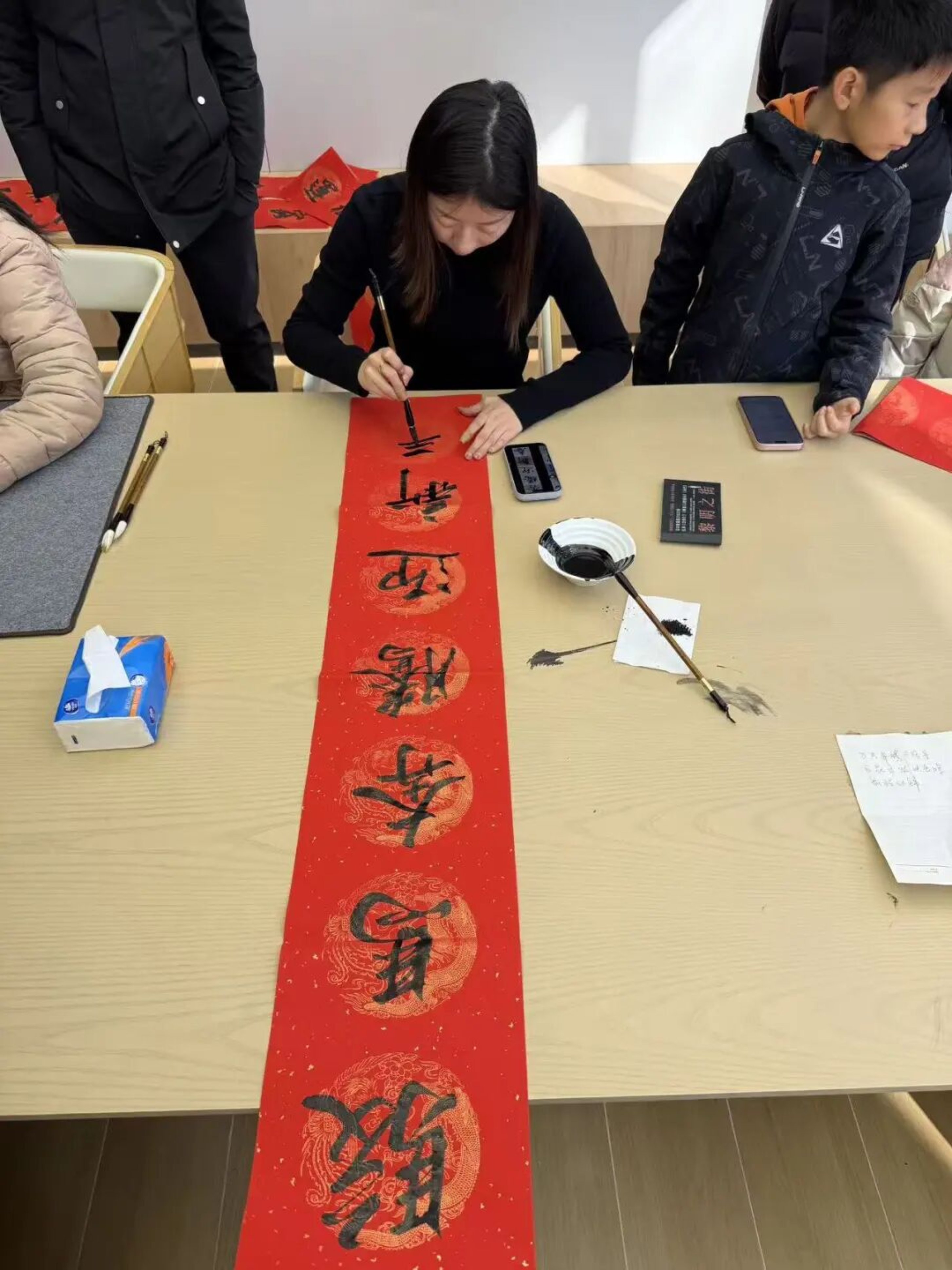 此次活动持续两个多小时,累计书写并赠送春联20余副,孩子们骄傲地展示自己的作品,大人们互相赠送书写的心意,原本只是点头之交的邻居相约“明年还要一起来写”。