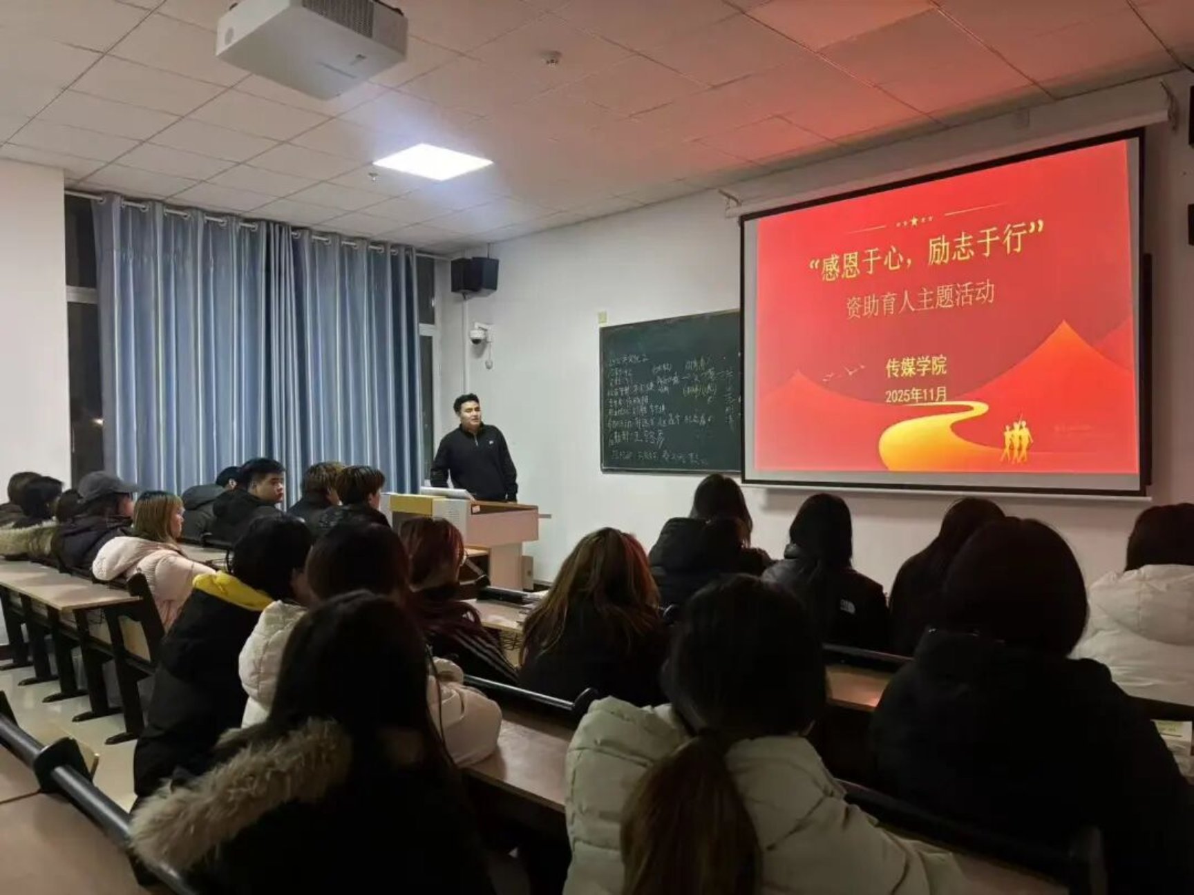 为深入贯彻落实国家资助政策,强化资助工作的育人功能,引导学生树立感恩意识、践行励志精神、筑牢解困意识,11月26日传媒学院开展“感恩于心,励志于行”资助育人主题教育活动。