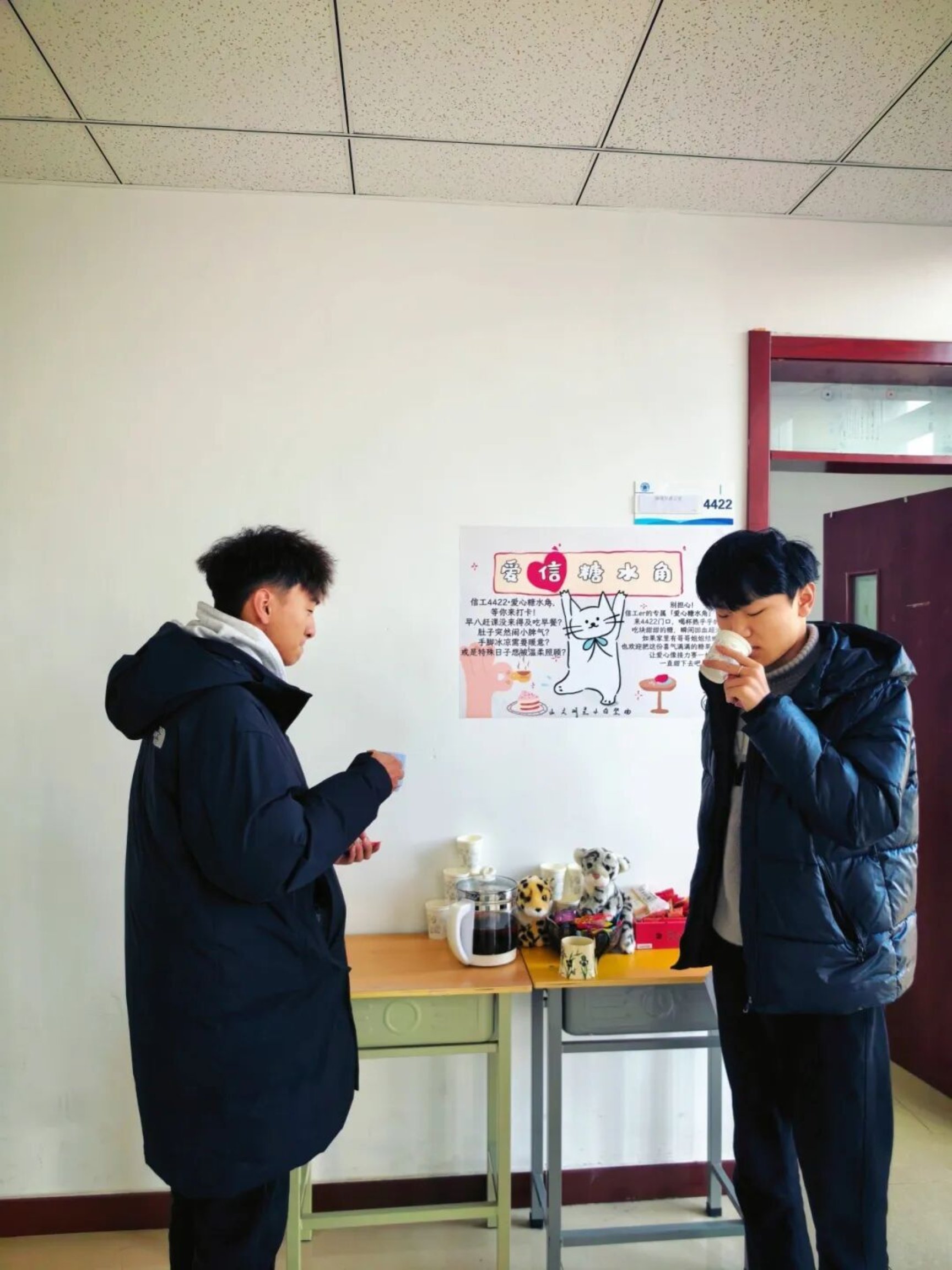 冬日的校园里,总有一些温暖不期而遇。信息工程学院在博文楼4422办公室门口的爱“信”糖水角正式上线啦!这个小小的角落,藏着信工人的温柔与善意,成为了学院里最甜的暖心地标。