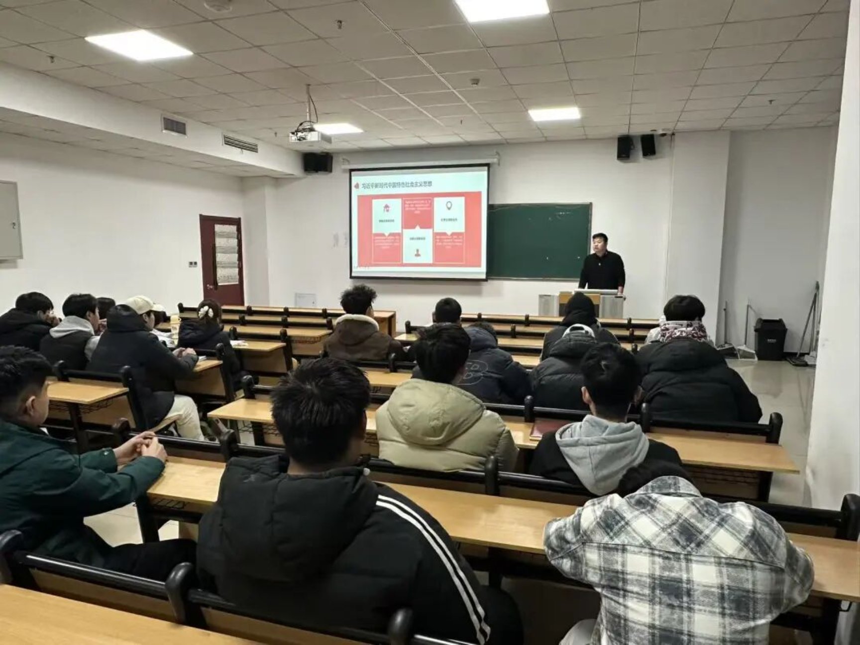 于建伟老师深入阐释了马克思主义基本原理与中国具体实际相结合的光辉历程,系统梳理了毛泽东思想、邓小平理论、“三个代表”重要思想、科学发展观以及新时代中国特色社会主义思想这一脉相承又与时俱进的理论体系。通过生动的案例与详实的史料,强调了这一系列理论成果作为我们党和国家事业不断从胜利走向新的胜利的强大思想武器与科学行动指南的重要意义,并鼓励同学们要深刻领会其核心要义与实践要求,自觉用以武装头脑、指导实践。